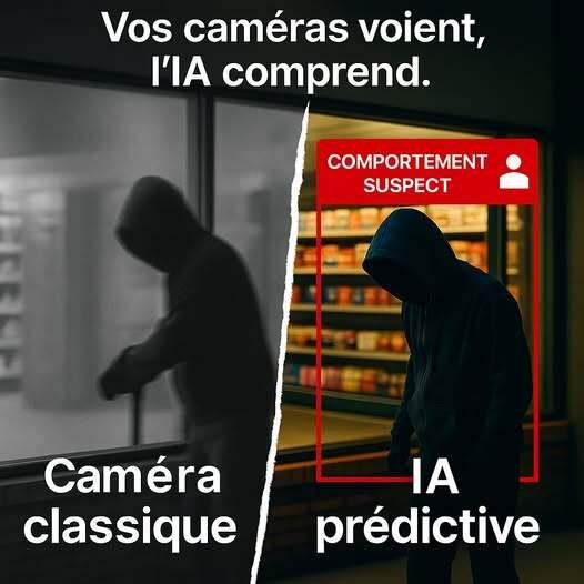 Contrairement aux caméras classiques qui se contentent d’enregistrer, l’IA comportementale analyse en temps réel, comprend les comportements humains, identifie les anomalies et intervient avant que le vol ne se déclenche réellement.